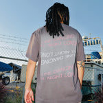 Printed on our new all custom blanks made from scratch that are highlighted by a heavier, thicker, “washed down to soften” cotton fabric with a boxier fit and thicker neck collar. Features a muted dark tones print.