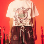Printed on our new all custom blanks made from scratch that are highlighted by a heavier, thicker, “washed down to soften” cotton fabric with a boxier fit and thicker neck collar.